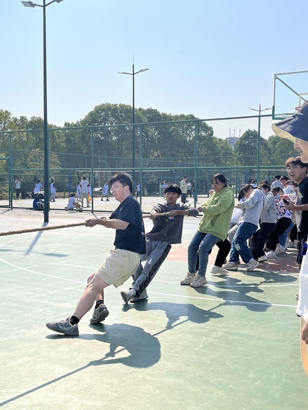 为丰富学生的课余生活,增强学生体育锻炼意识,10月16日下午,学校于阳光校区篮球场举办拔河比赛。经过层层选拔,国贸12202班和CFA12202班代表tyc1286太阳成集团参加校园初赛,挺进全校四强队伍。